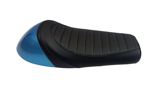 Royal Enfield GT Continental and Interceptor 650cc Single Seat Leather with Blue Cowl D2Specification: Fit to Make: GT Continental & Interceptor 650cc Seat Plate: Royal Enfield Genuine Seat Plate Seat Colour: Black...