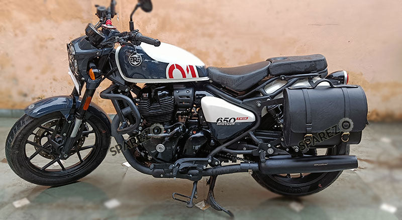 Fit For Royal Enfield Shotgun 650 Black Leather Pannier Bags with Mounting Pair