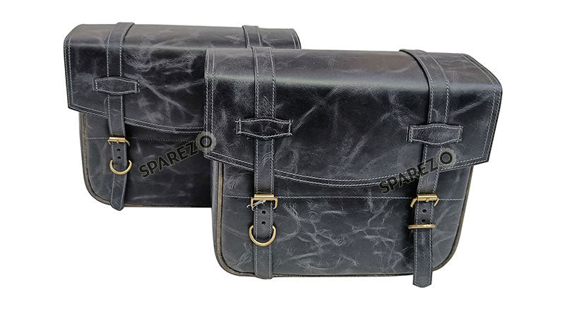 For Royal Enfield Bear 650 Genuine Leather Pannier Bags Black With Saddle Stays