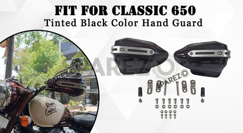 Fit For Royal Enfield Classic 650 Tinted Carbon Black Hand Guard - SPAREZO