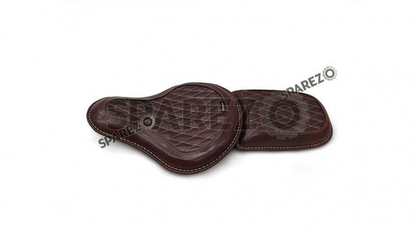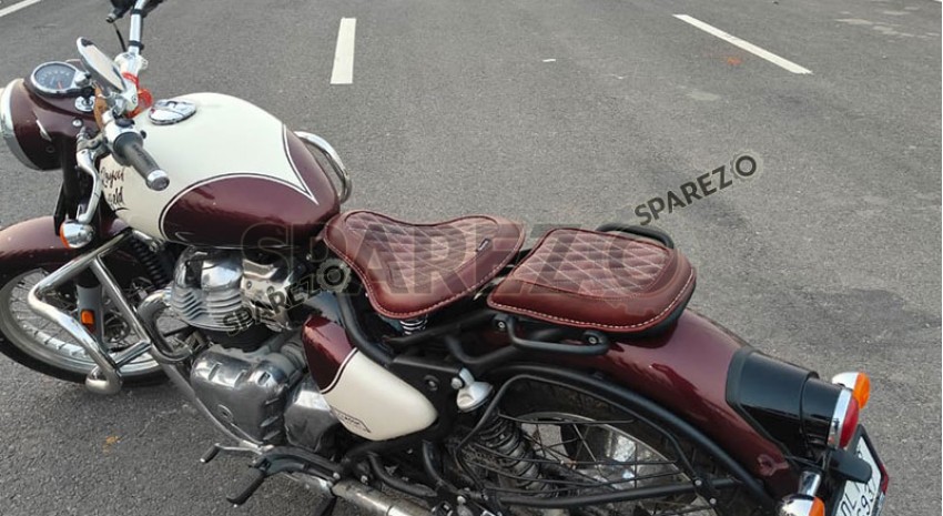 For Royal Enfield Classic 650 Genuine Leather Front and Rear Seat Tan Color - SPAREZO