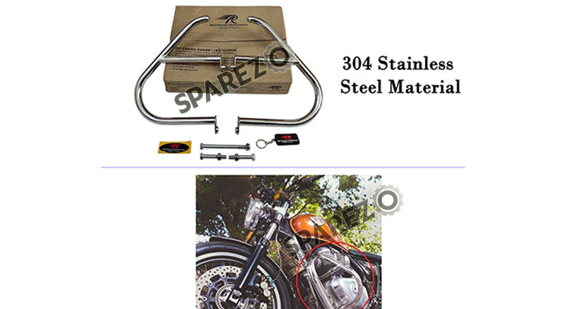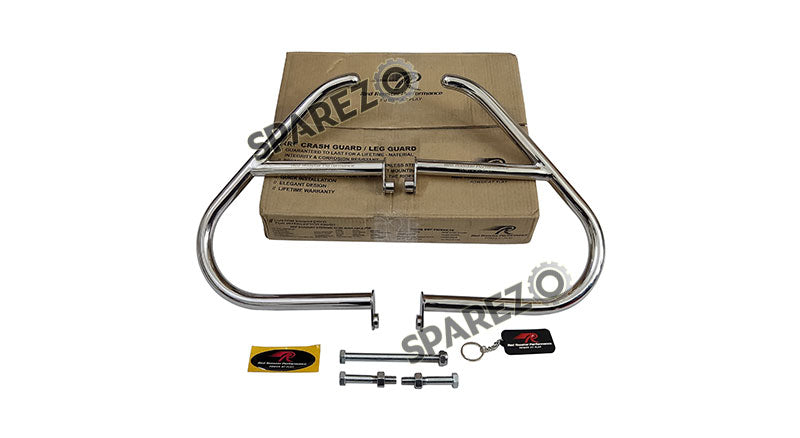 Uncommon and one of its kind, Sparezo has come up with Apollo Crash Guard by Red Rooster. This unique shape crash bar is customized to highest specifications and matches all the quality standards for giving safety to the engine and fuel tank. Its stainless steel material makes it resistant to damage, corrosion, wear & tear and are guaranteed to last longer. The Crash Bar is also available in Black color.